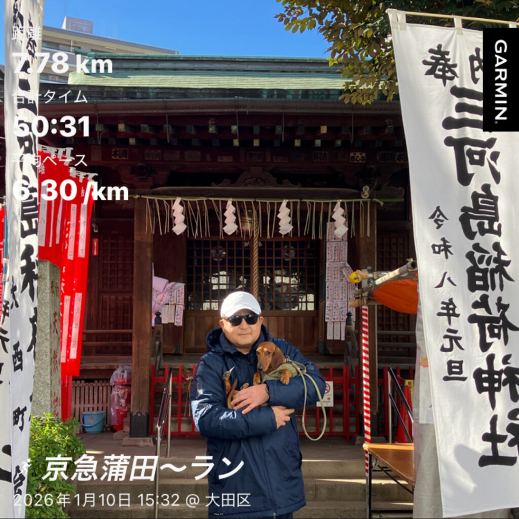 三河島の親戚の家に遊びに行った帰りは昨年同様に京急鎌田駅付近で車から降りて家までのランです。家の近くまできて時計を見ると7.75キロだったので7.77キロで終わらせようと時計を見ながら走って時計を止めたら、少し走りすぎてしまい7.78キロで終了。