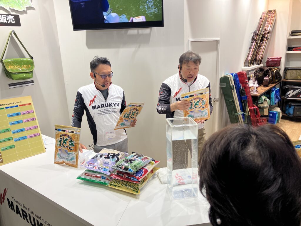 マルキューさんブースではエサの配合や、4月に発売されるエサのお話を聞いてきましたが、とても勉強になりました。残念ながらプレゼントの抽選にはハズレましたが、とてもいいお話を聞けました。