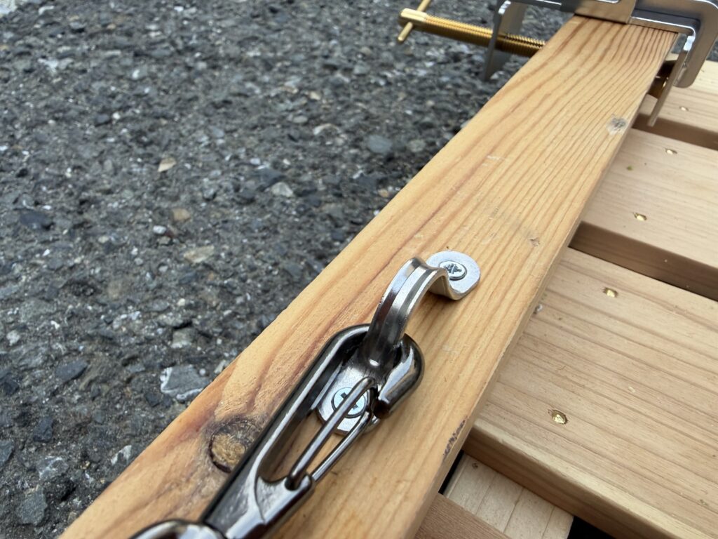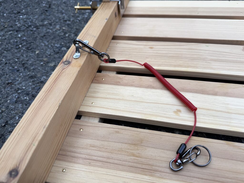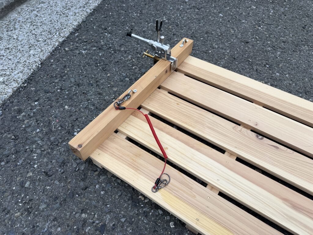 釣り台に取り付けて、自作ですが落とし物防止のワイヤーもセット完了。早く行きたいな・・・